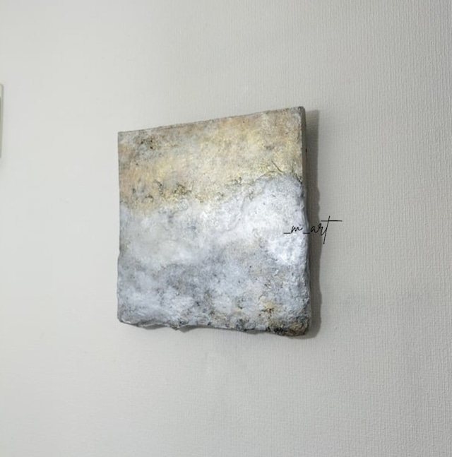 .............................................. _m_art 色とテクスチャーの甘美な融合 ............................................... ◯作品説明 「Strata − 沈殿する光」 光は瞬間ではなく、時間の中で沈み、層となる。 時を重ねた金と銀は装飾ではなく、長い時間の中で地層の中へ沈殿した光の痕跡。 立体の表面に生まれた揺らぎは、空間の光を受け取りながら、静かに表情を変えていく。 有機的なフォルム、経年の美を宿したテクスチャー、光を重ねた色彩。 幾重もの工程を重ねて生まれた一枚が、空間に静かな奥行きと深みをもたらします。 ◯作品詳細 サイズ:25×25×2.5cm 天然漆喰、モデリングペースト 裏面にサインあり 金具、吊紐装着済 作品証明書あり 制作年:2026 重さ:517g エディション:一点物 〈注意事項〉 ・©_m_art 作品・文章の無断転載、模倣を固くお断りいたします。 ・お使いのモニターによって色が多少異なって見える場合がございます。 ・凹凸のある作品は強い落下や擦る等された場合、削れる場合がごさいます。作品により表面保護材を施しております。 ・直射日光、水回りのもとでの保管は退色や劣化の原因となる場合がごさいます。 ・インテリアの写真は実際のサイズと異なる場合がございます。詳細はサイズ表記をご参照下さい。 ...................................................... 天然素材抽象画家 五十部美世 (MIYO ISOBE) / _m_art 自然と対話し、静けさの中に佇む抽象画を制作しています。漆喰や卵殻などを用いた作品は、空間とともに呼吸し、光や影で表情が変化します。見る人の記憶や感情をそっと呼び覚まし、日常に小さな癒しや発見をもたらしてくれますように。 展示・入選・納品実績 三軌展入選/国立新美術館、兵庫県立美術館Luxembourg Art Prize(2025)ほか サロン・クリニック・オフィス・家具ブランドショールーム・個人邸宅など ……………………………………………………… アート 絵画 現代アート 抽象画 ファインアート テクスチャーアート ミニマルアート 漆喰アート オーガニックアート ミクストメディア 自然素材 一点物 原画 インテリアアート 和モダン モダンインテリア 空間デザイン ホテルライク 新築祝い ギフトアート 癒しの空間 WabiSabi 静寂アート ミニマルインテリア ジャパンディ 店舗内装 Japandi minimal interior zen art