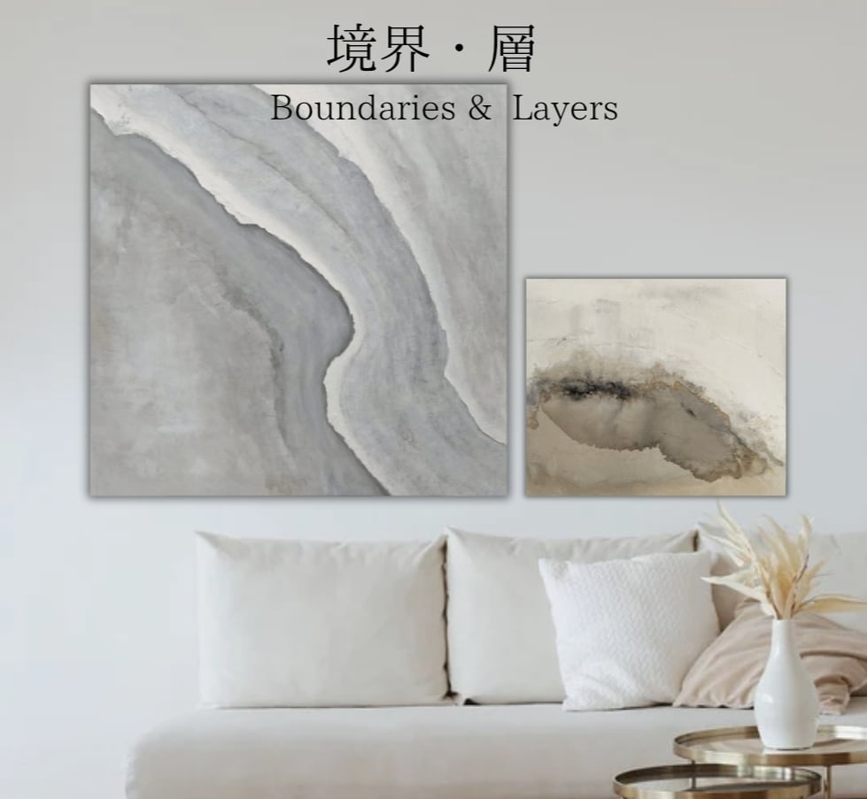 Commission Work 家具ブランドショールームご依頼品 (KOKOROISHI東京・南青山ショールーム) ブランドを象徴する黒革ソファ「HIBIKI」と 空間全体の質感に呼応するよう、制作いたしました。 (制作期間:約2ヶ月) 「Strata-金の記憶」 サイズ:80×80×3cm (S25号) 天然漆喰、卵の殻、墨、アクリル絵の具、モデリングペースト 制作年:2026 エディション:一点物 ©_m_art ...................................................... 天然素材抽象画家 五十部美世 (MIYO ISOBE) / _m_art 天然漆喰や卵殻、珈琲粉などを用い、光や影、時間で表情を変える抽象画を制作。静けさの中で、見る人の記憶や感情をそっと呼び覚まします。 展示・納品実績 三軌展入選/国立新美術館、兵庫県立美術館(2025)ほか サロン・クリニック・オフィス・家具ブランドショールーム・個人邸宅など ……………………………………………………… アート 絵画 現代アート 抽象画 インテリアアート テクスチャーアート ミニマルアート 漆喰アート オーガニックアートミクストメディア 自然素材 一点物 原画 和モダン モダンインテリア 空間デザイン ホテルライク 新築祝い ギフトアート 癒しの空間 WabiSabi 静寂アート ミニマルインテリア ジャパンディ 店舗内装 Japandi minimal interior zen art