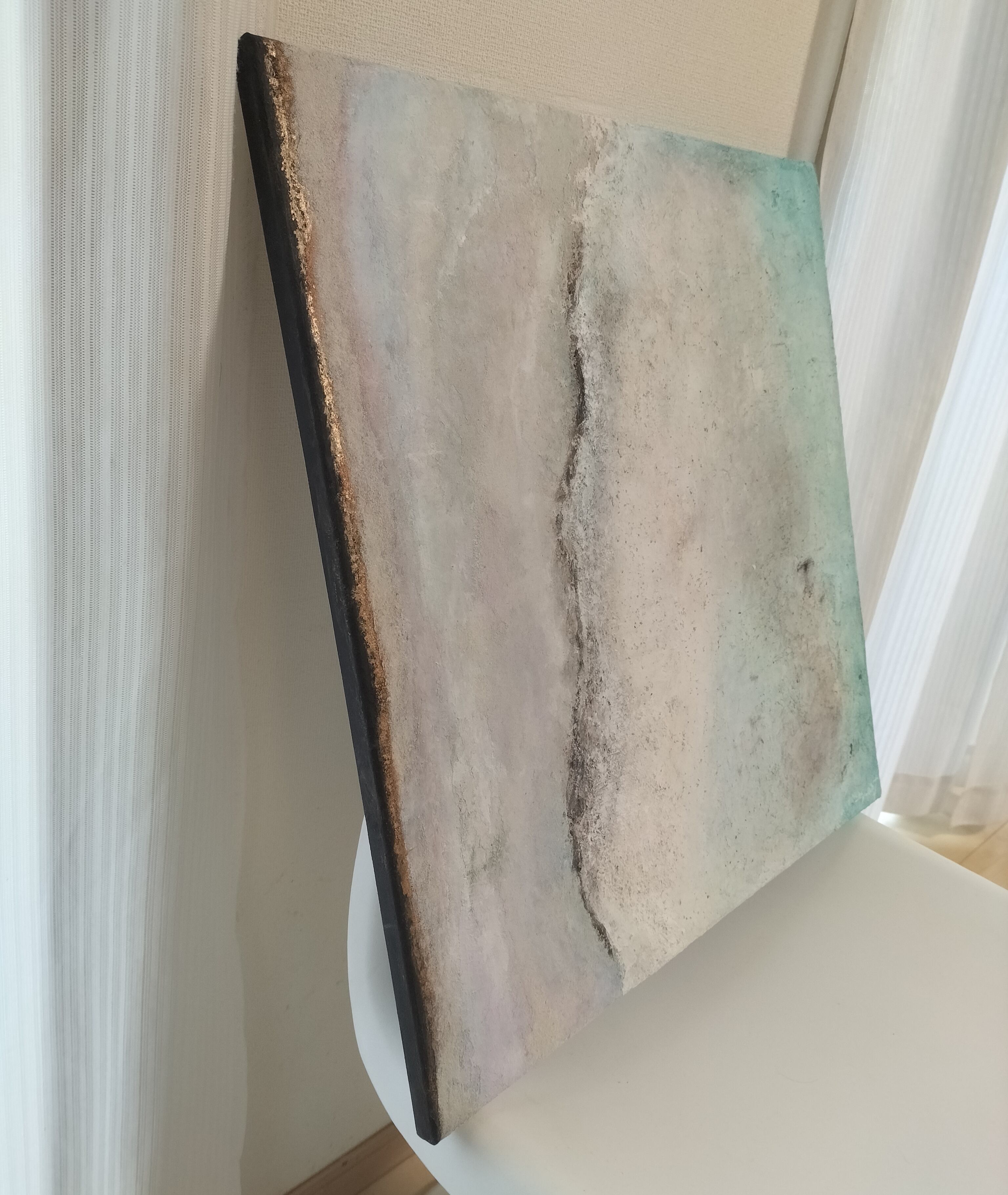 技法:アクリル絵の具、天然漆喰、コーヒー粉、モデリングペースト