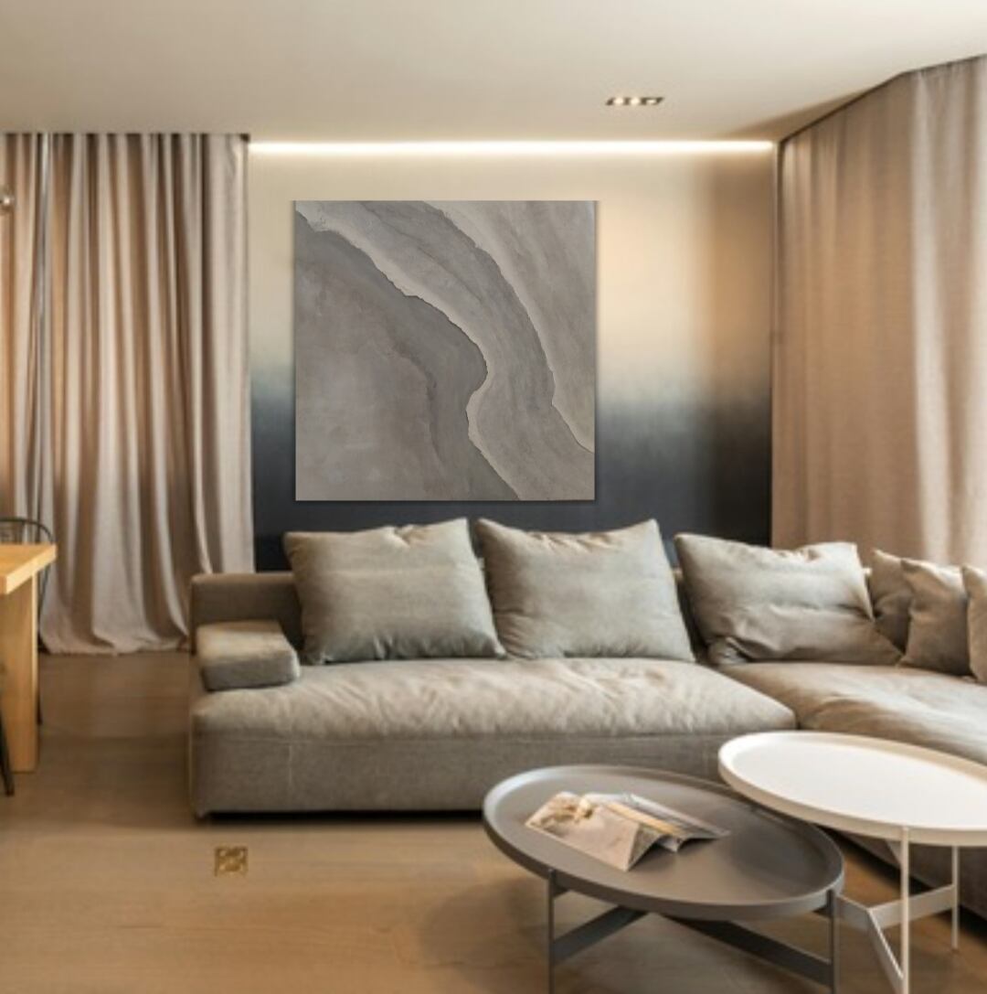 【Memory of Layers − 悠久の時】漆喰アート・大型絵画・抽象画・店舗内装・モダン・ホテルライク・ミニマルアート・層・波・一点物(グレージュ/モノトーン)
