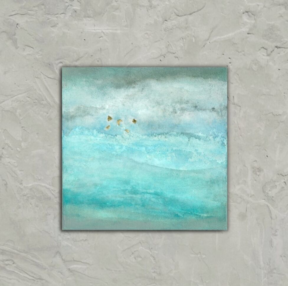 【Whispers of water 】現代アート・絵画・原画・抽象画 ・爽やか・店舗デザイン・インテリアアート・一点物(水色/グリーン)