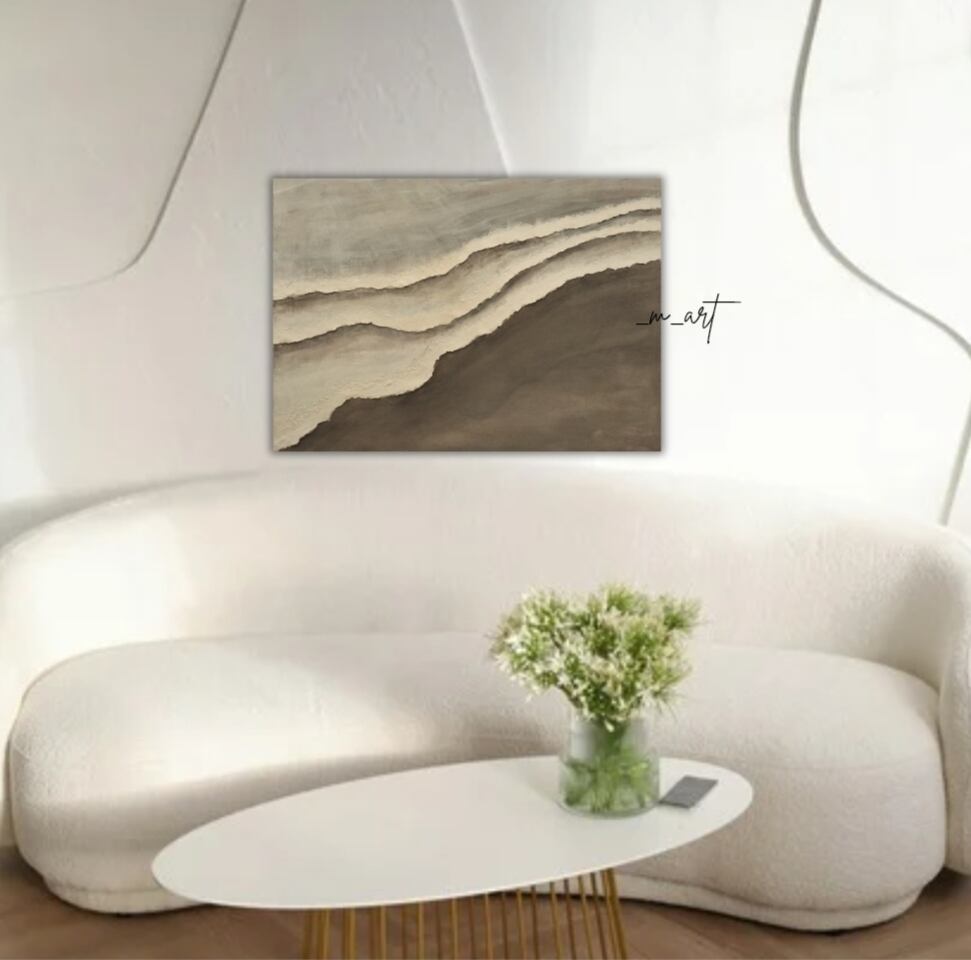 立体感のある波と本物の砂のような質感が、時を重ねる深みをそっと宿し、見る人の心を穏やかに包み込みます。