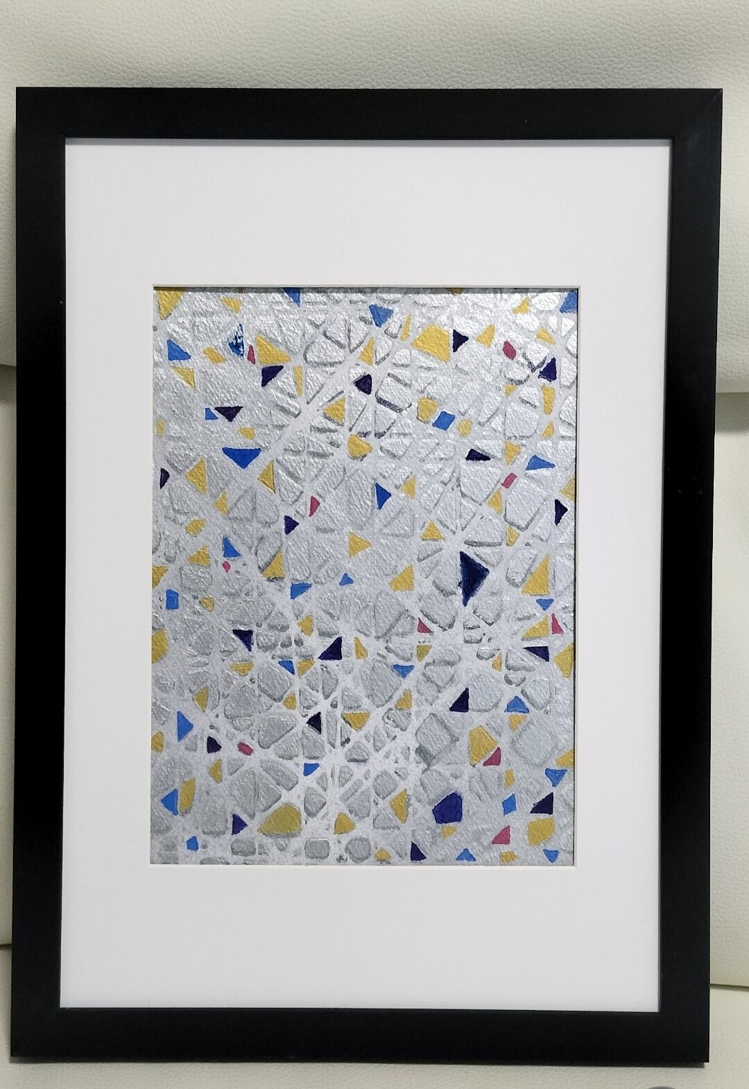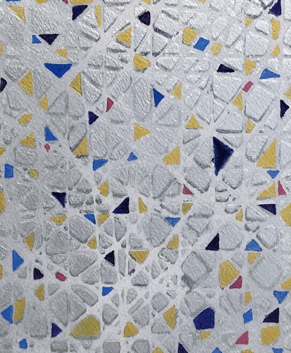 【Light−プリズム】額付原画アート・抽象画・インテリアアート・、絵画・一点物(シルバー)