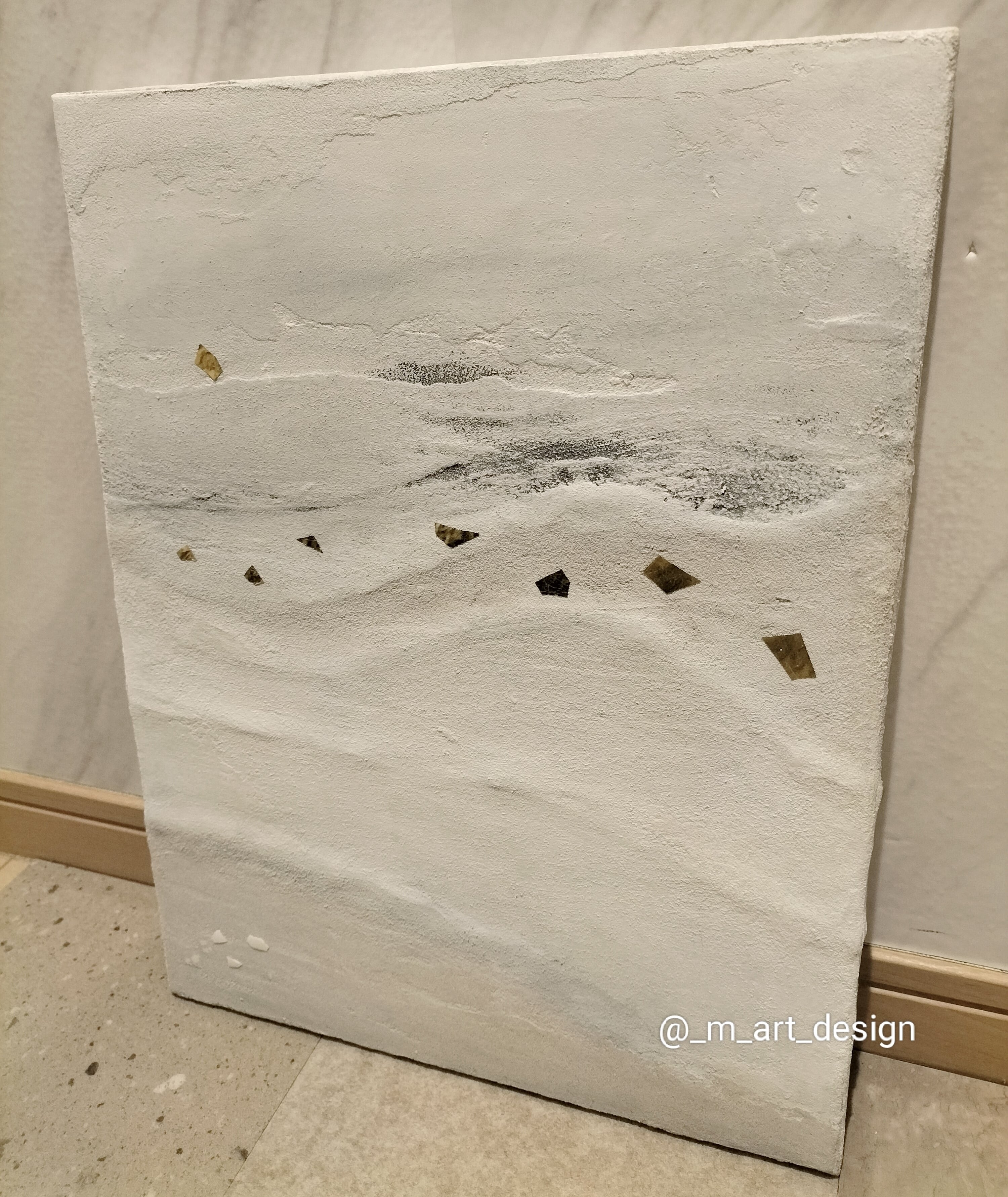 自然と対話し、静けさの中に佇む抽象画を制作。天然漆喰や卵殻、珈琲粉などを用いた作品は空間とともに呼吸し、光や影で表情を変え、見る人の記憶や感情をそっと呼び覚まします。日常に小さな癒しや発見、エネルギーを届けられたら嬉しく思います。