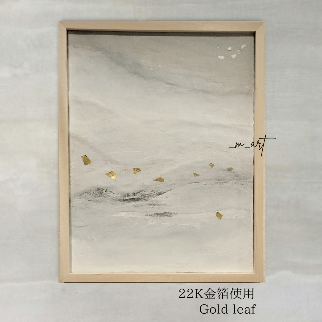 【余白】額付原画アート・金箔・抽象画・立体・金箔・ミニマル・和モダン・インテリアアート・一点物(ホワイト/グレー)