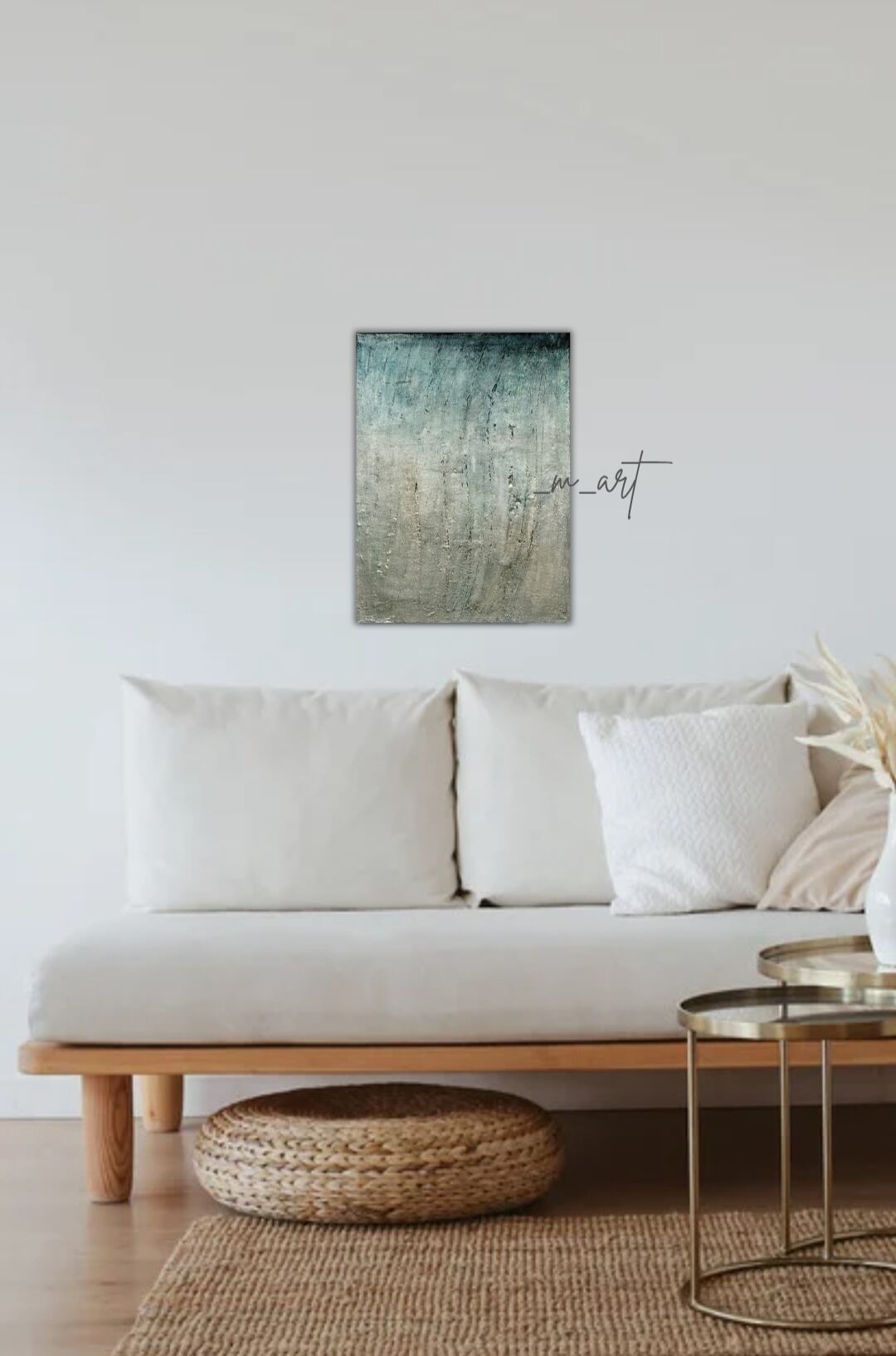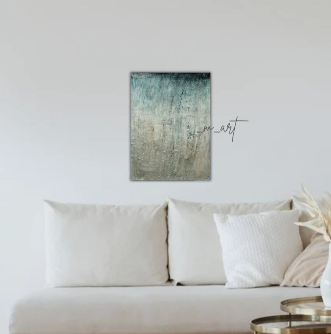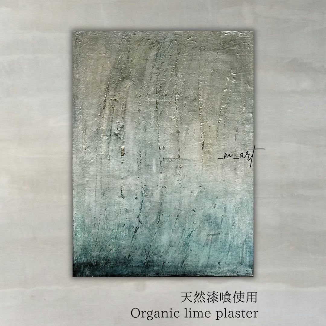 【Water − 翠雨】漆喰アート・抽象画・現代アート・インテリアアート・一点物(グリーン/ブルー)