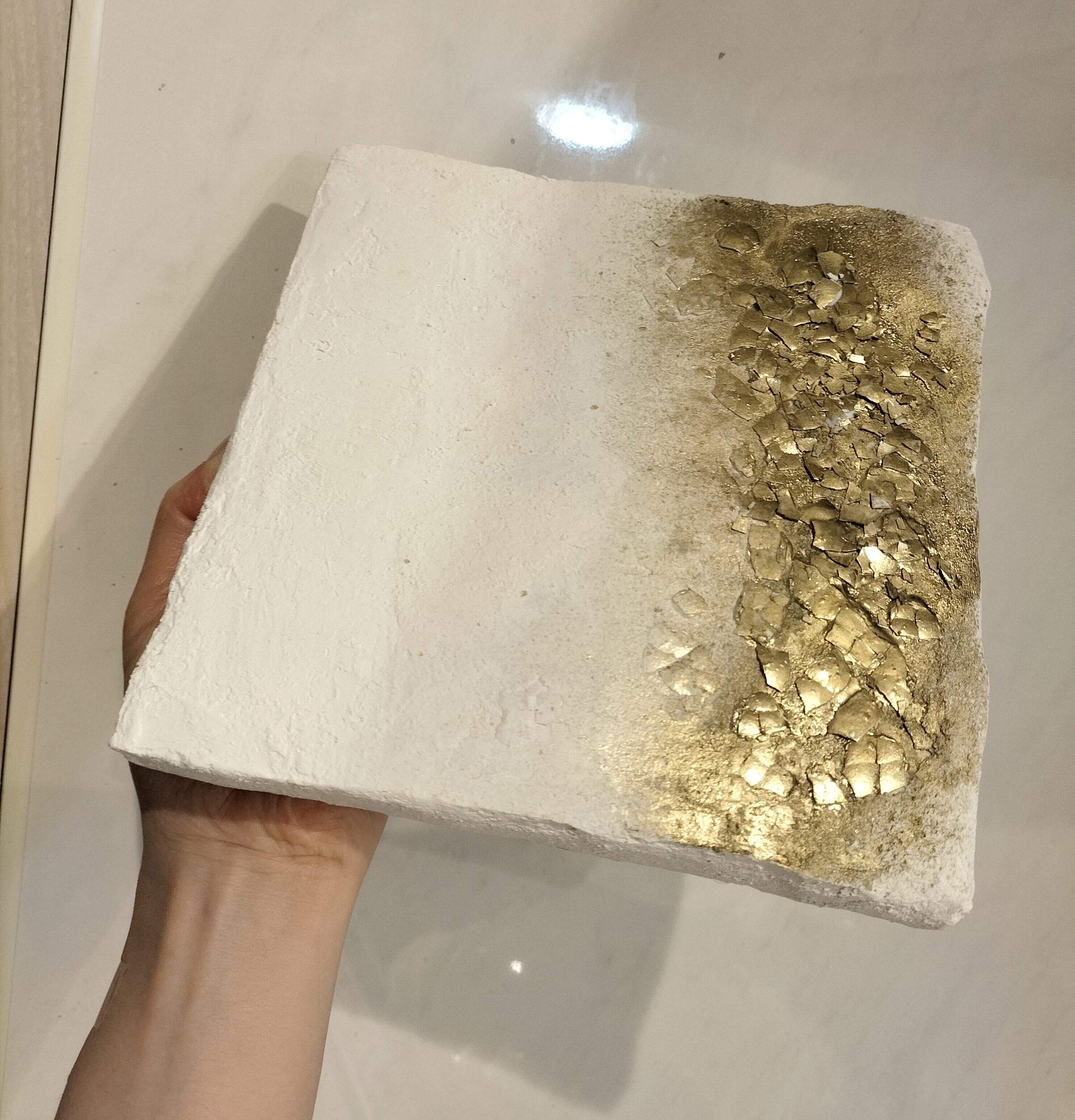 【Earth − 光の間】漆喰アート・テクスチャーアート・ミニマルアート・インテリアアート・ギフト・プレゼント・お祝い(ホワイト/ゴールド)