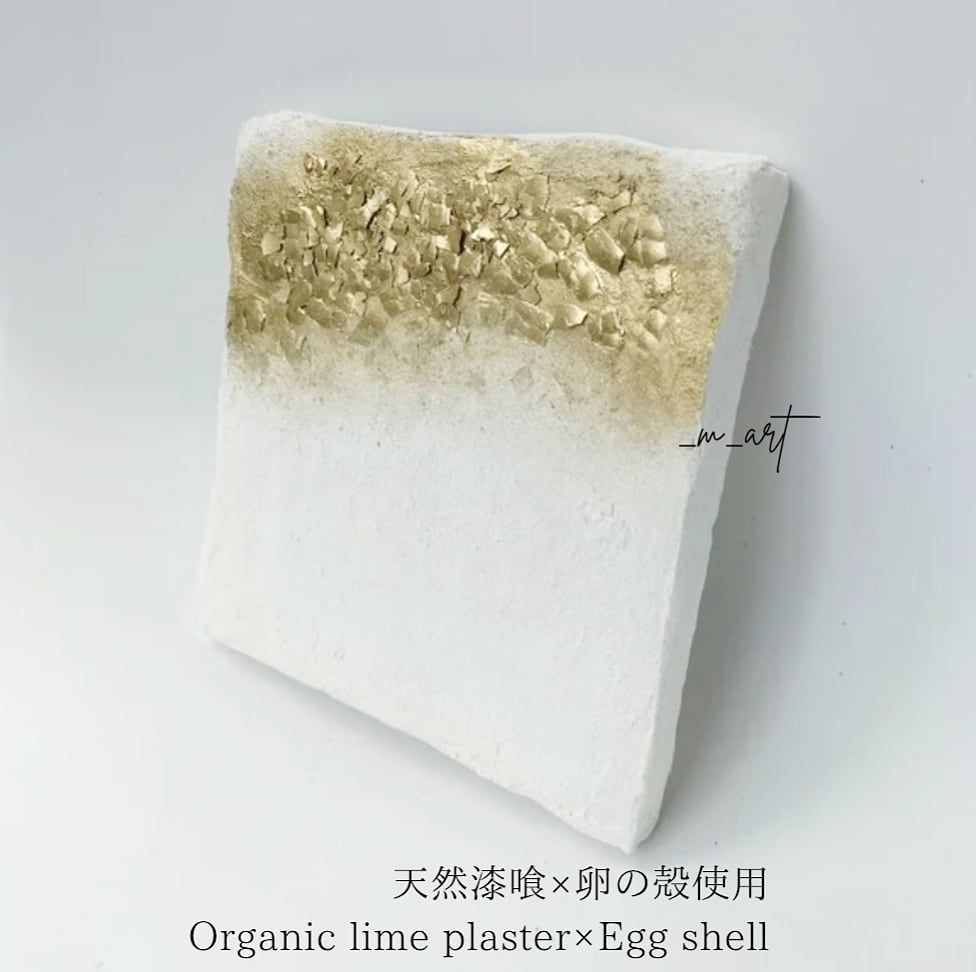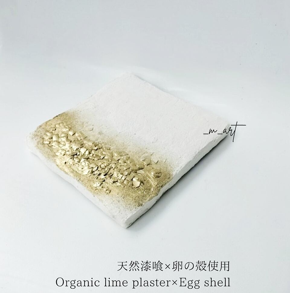 天然漆喰、アクリル絵の具、卵殻、モデリングペースト