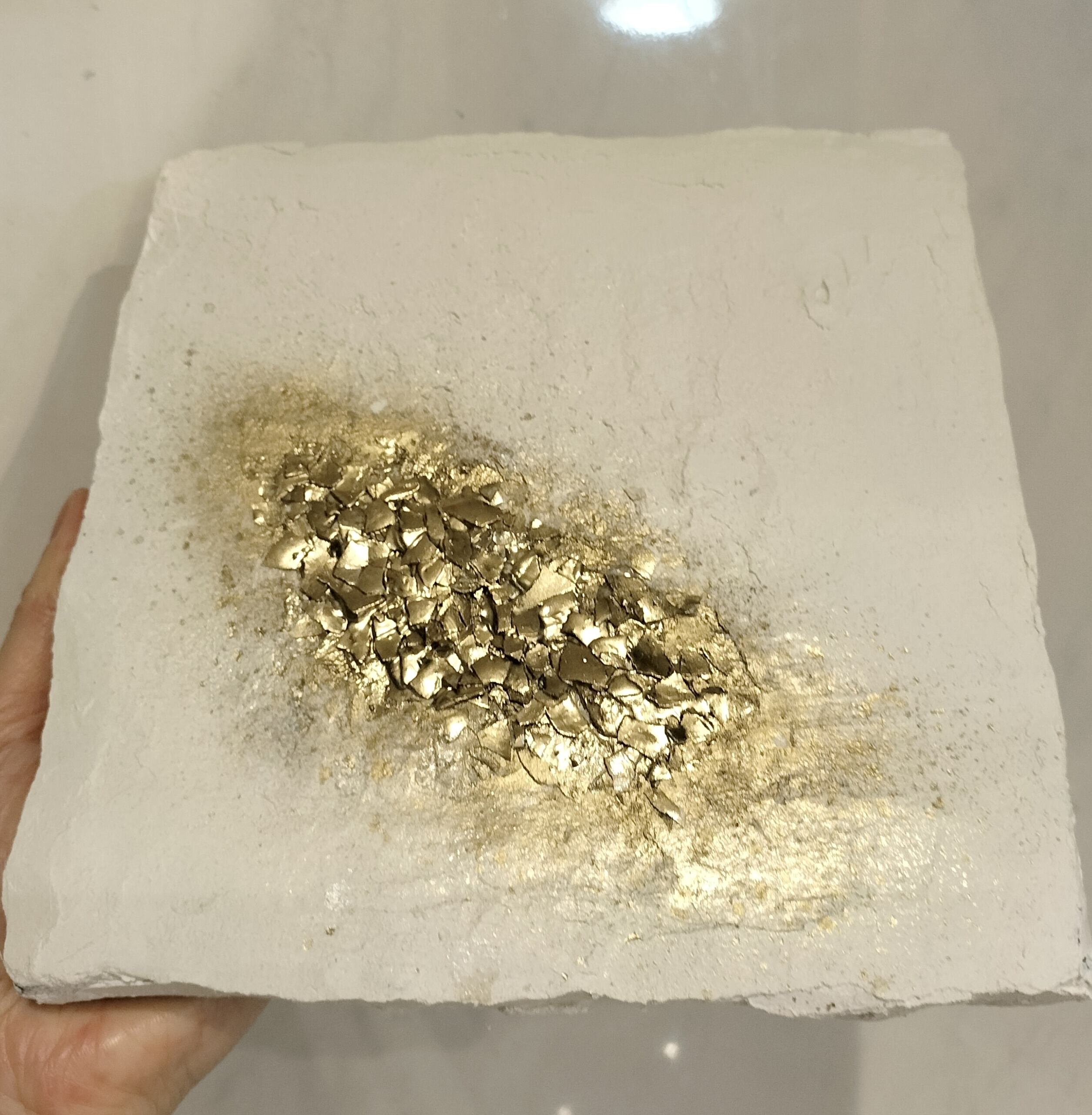 【Earth − 光の余韻】漆喰アート・テクスチャーアート・ミニマルアート・インテリアアート・ギフト・プレゼント・お祝い(ホワイト/ゴールド)