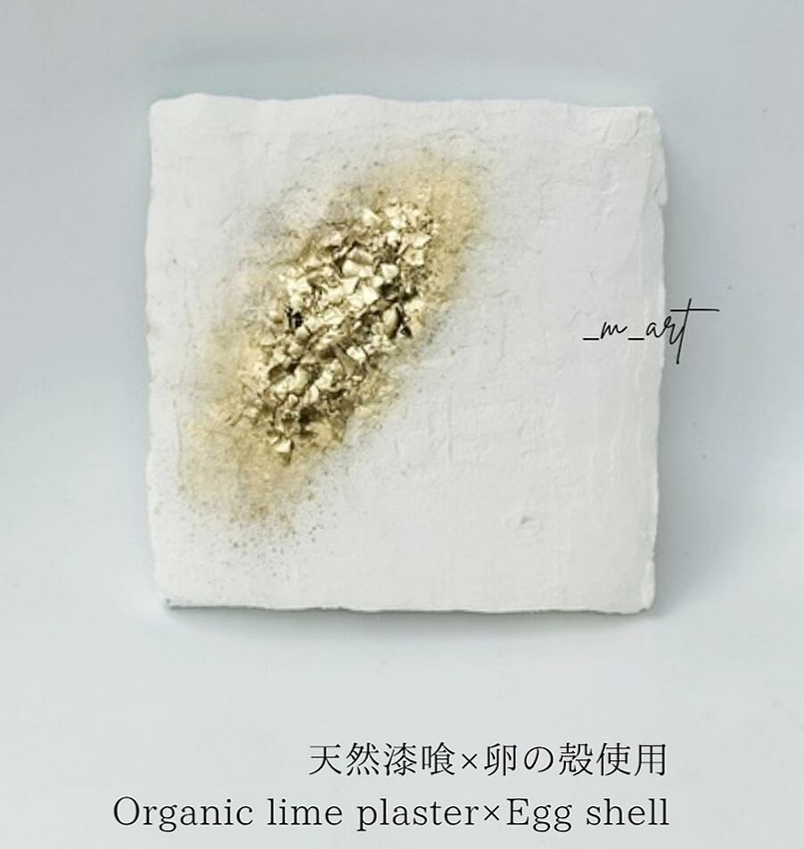 天然漆喰、アクリル絵の具、卵の殻、モデリングペースト、バーニッシュ、ストーン付