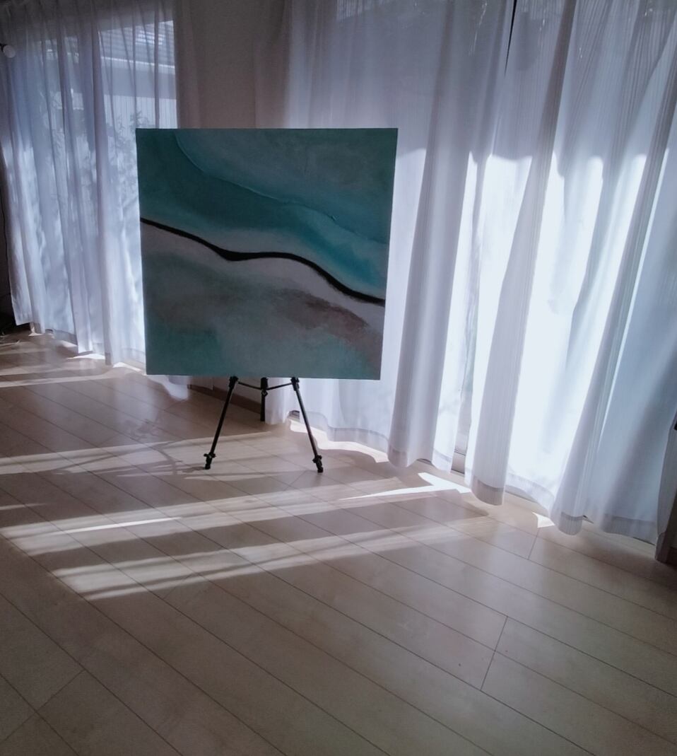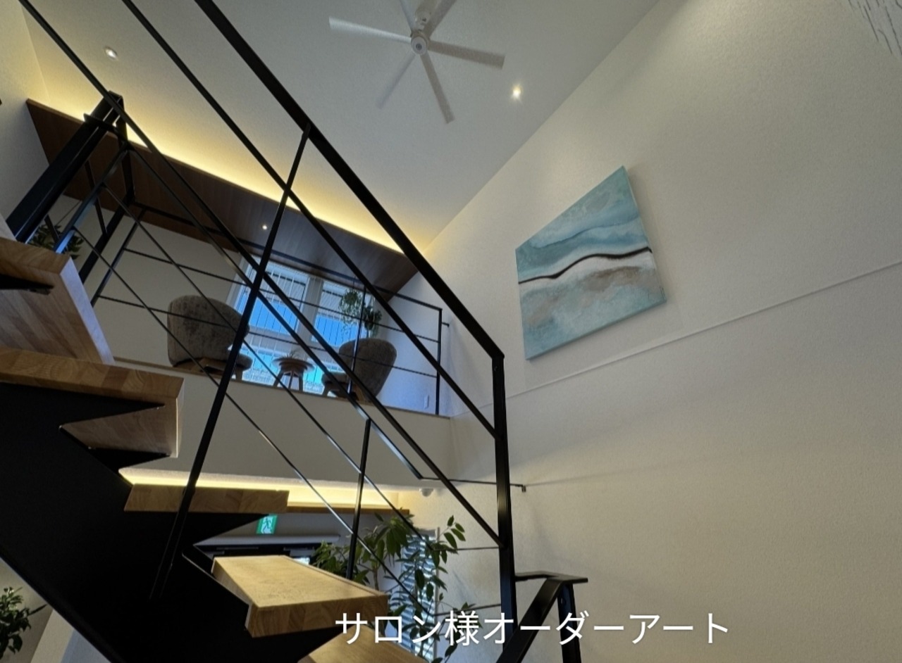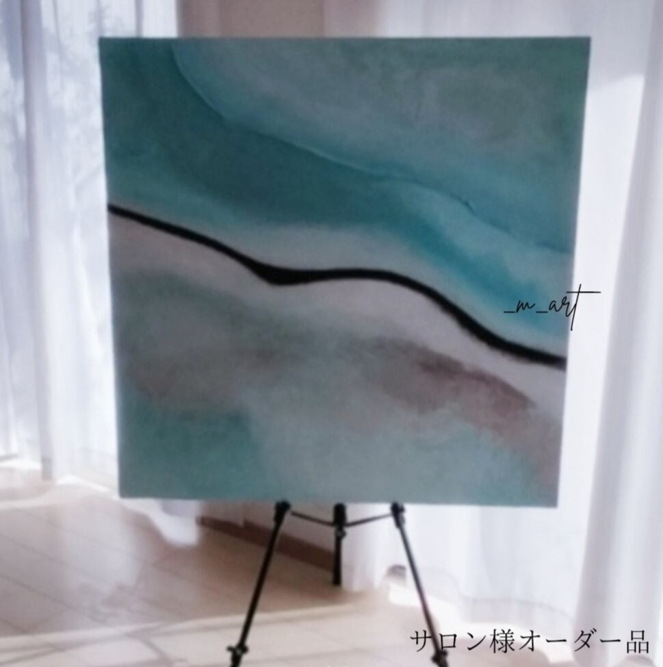 サロン様オーダー品【Heavenly Ocean】漆喰アート・大型アート・絵画・インテリアアート・海・波・一点物(水色/ホワイト)