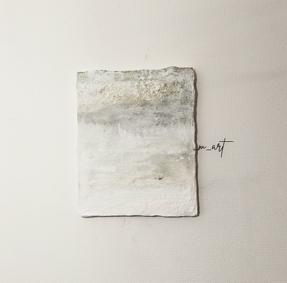 自然と対話し、静けさの中に佇む抽象画を制作しています。漆喰や卵殻などを用いた作品は、空間とともに呼吸し、光や影で表情が変化します。見る人の記憶や感情をそっと呼び覚まし、日常に小さな癒しや発見をもたらしてくれますように。