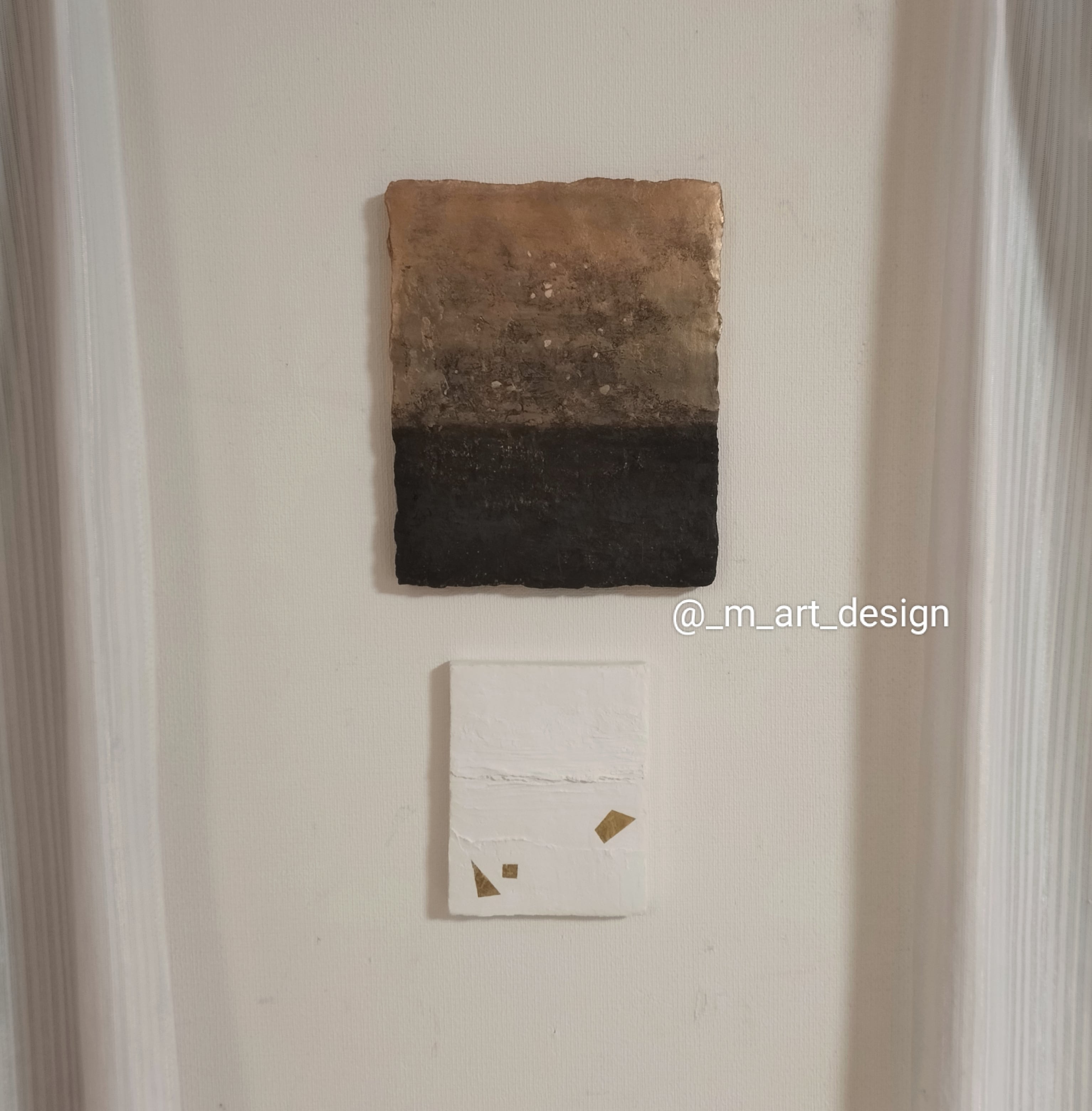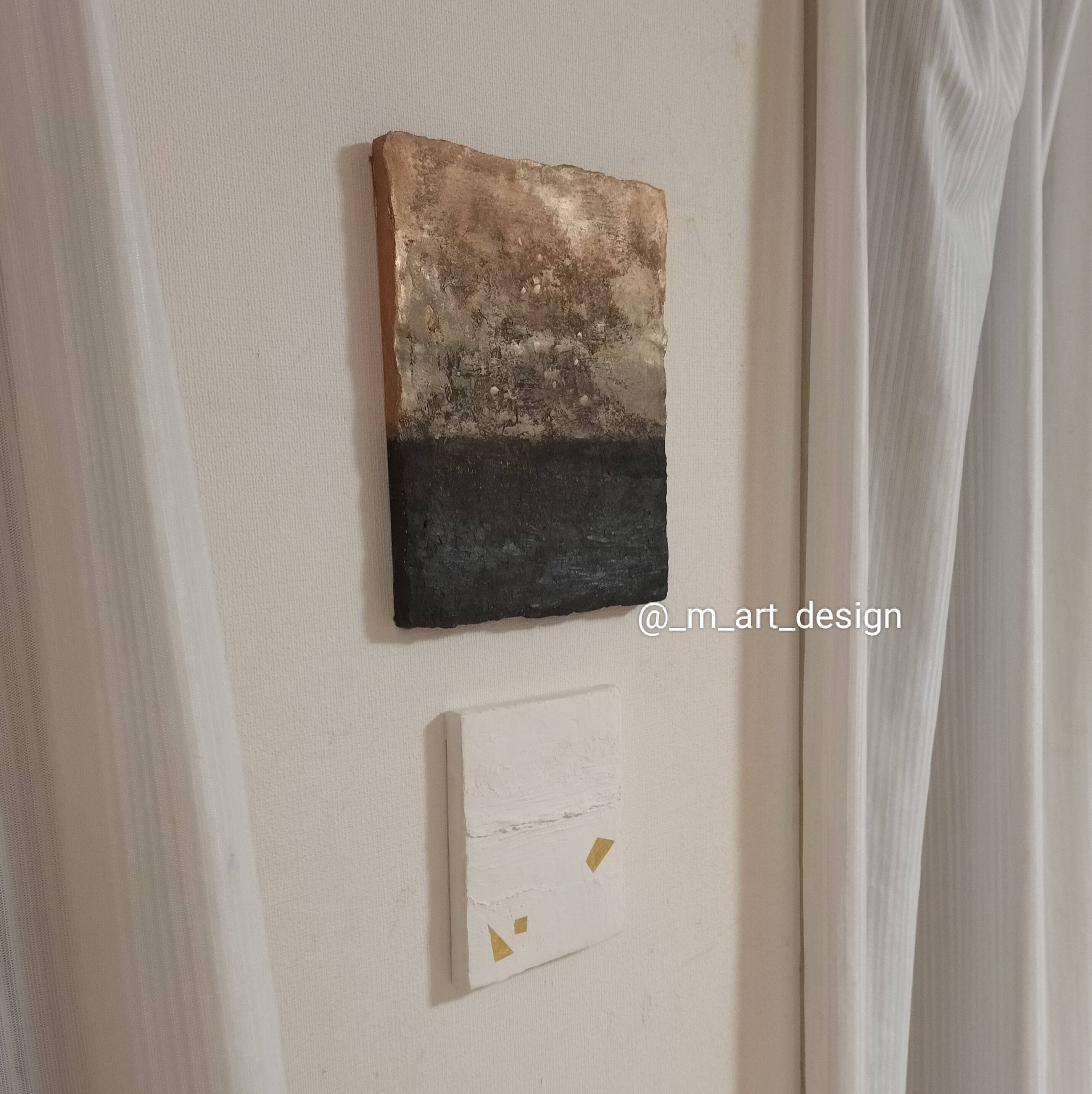 自然と対話し、静けさの中に佇む抽象画を制作しています。漆喰や卵殻などを用いた作品は、空間とともに呼吸し、光や影で表情が変化します。見る人の記憶や感情をそっと呼び覚まし、日常に小さな癒しや発見をもたらしてくれますように。