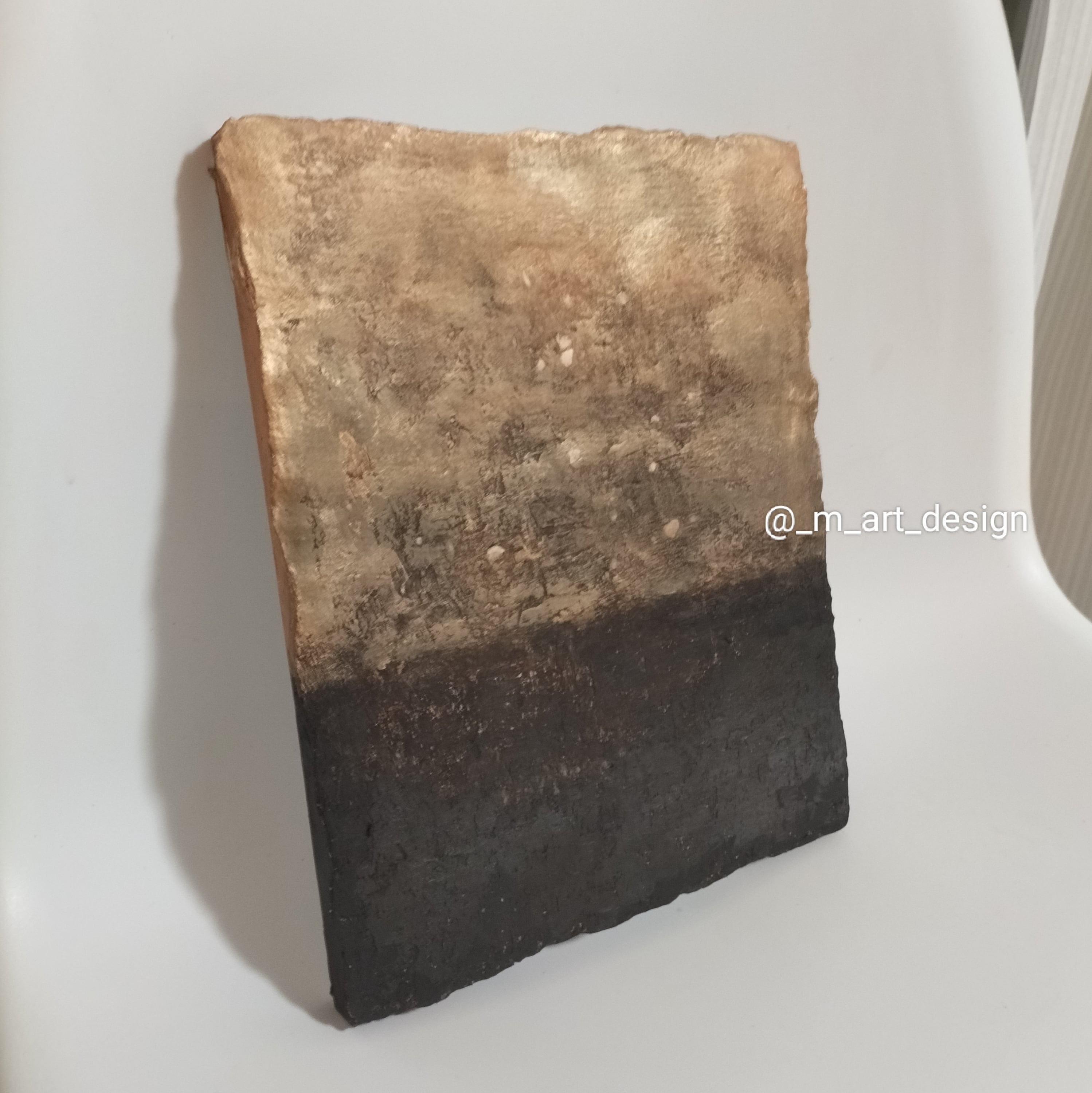 【Strata−時の旅人】漆喰アート・抽象画・侘び寂び・ミニマルアート・一点物(ブロンズ/ブラック)