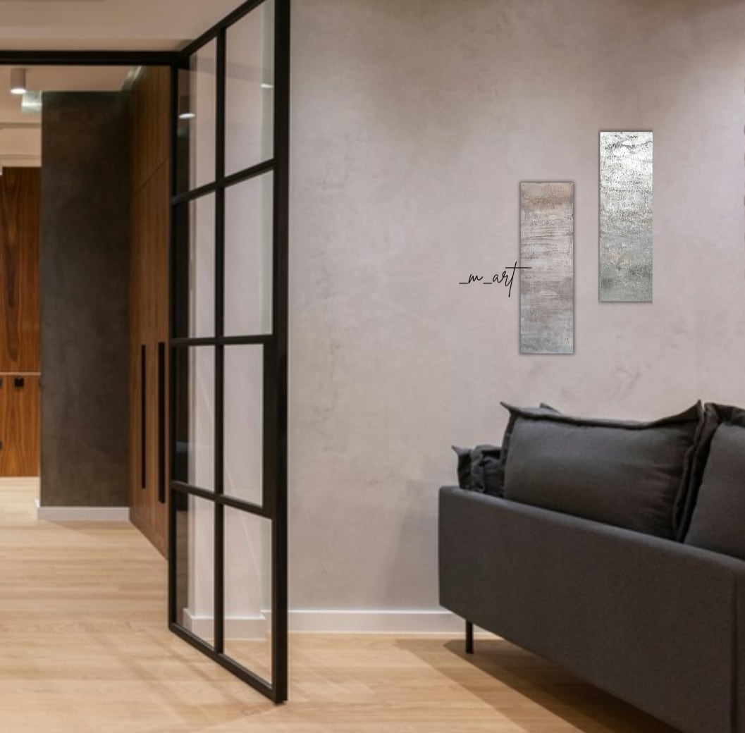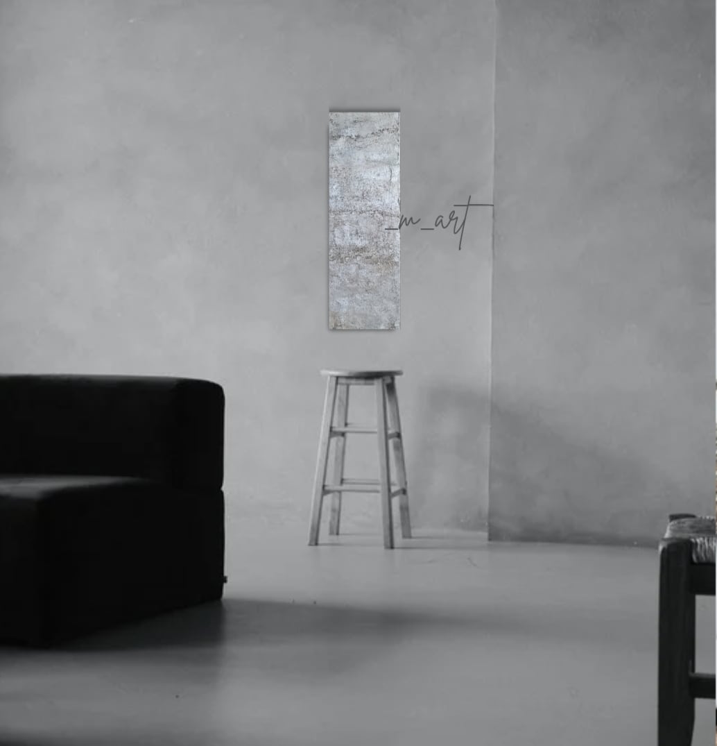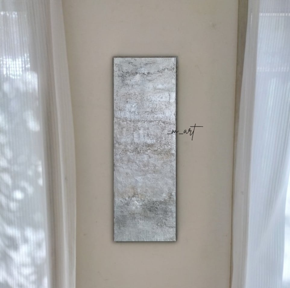 【Strata−銀砂】漆喰アート・抽象画・侘び寂び・ミニマルアート・一点物(シルバー)