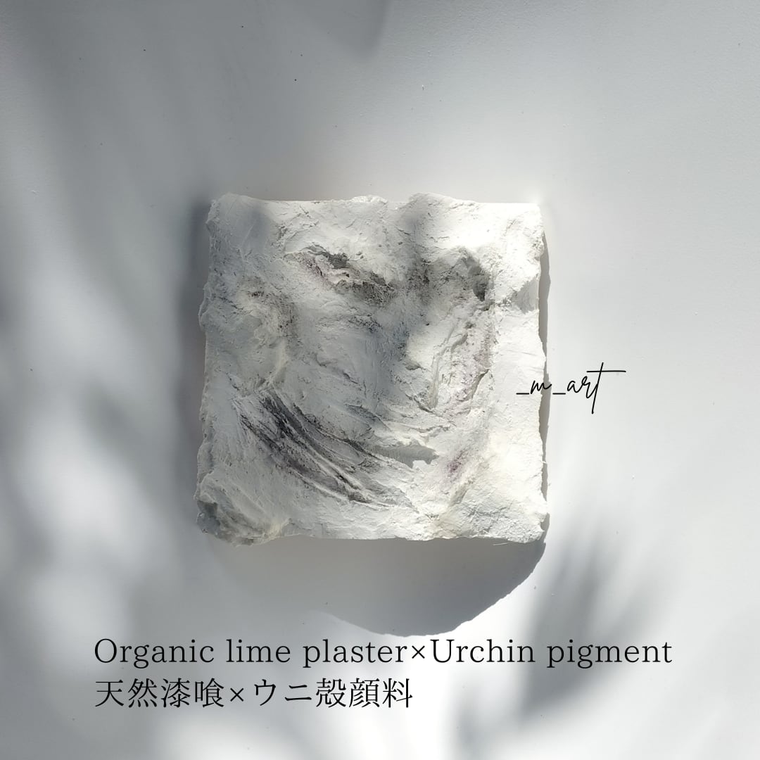 漆喰とウニ殻顔料が重なり、飾ったその時から静けさの奥に潜む確かな生命の気配が立ち上がります。