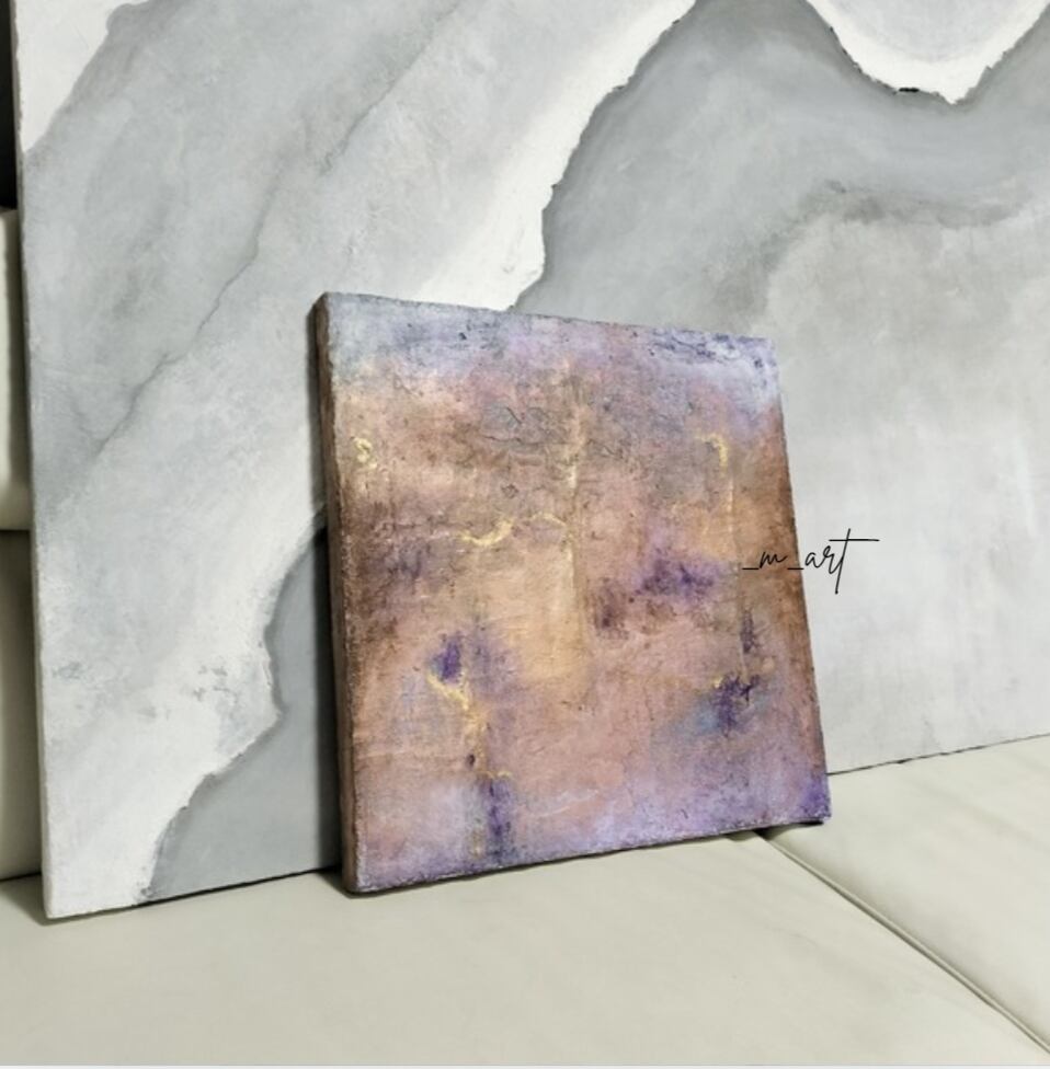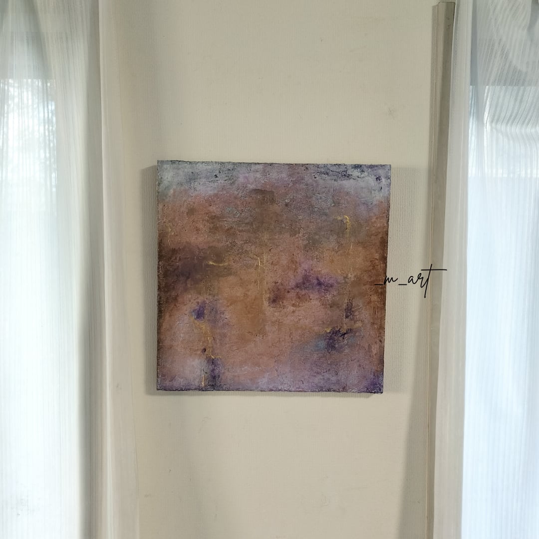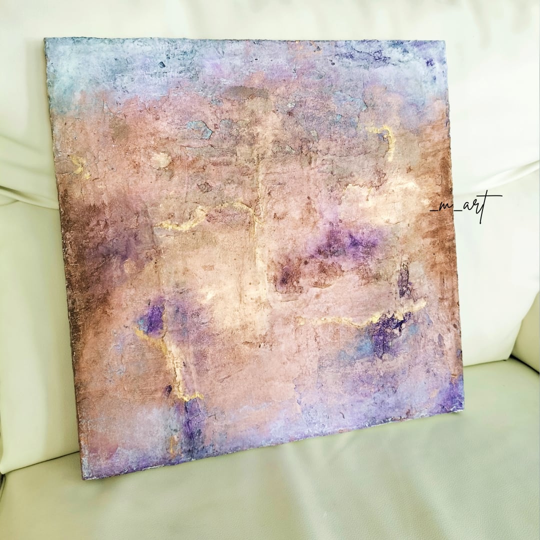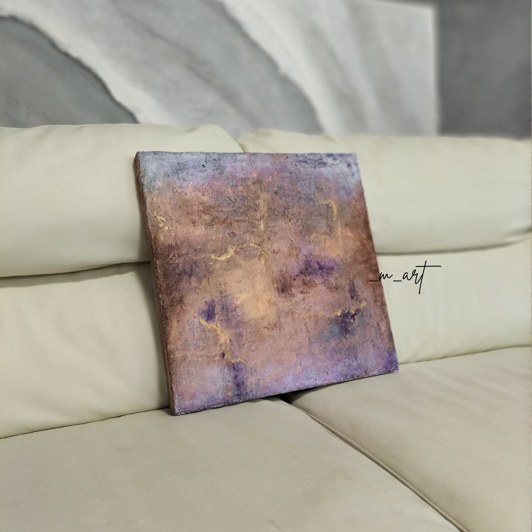 【 Bloom −香る色彩】漆喰アート・抽象画・華やか・一点物(パープル/ブロンズ/ゴールド)