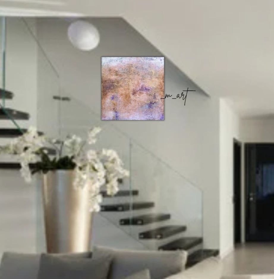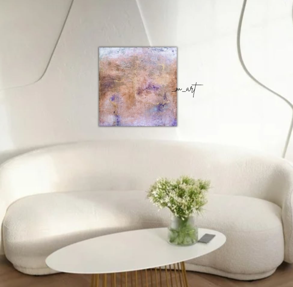 【 Bloom −香る色彩】漆喰アート・抽象画・テクスチャーアート・インテリアアート・ホテル内装・ミクストメディア・華やか・一点物(パープル/ブロンズ/ゴールド)