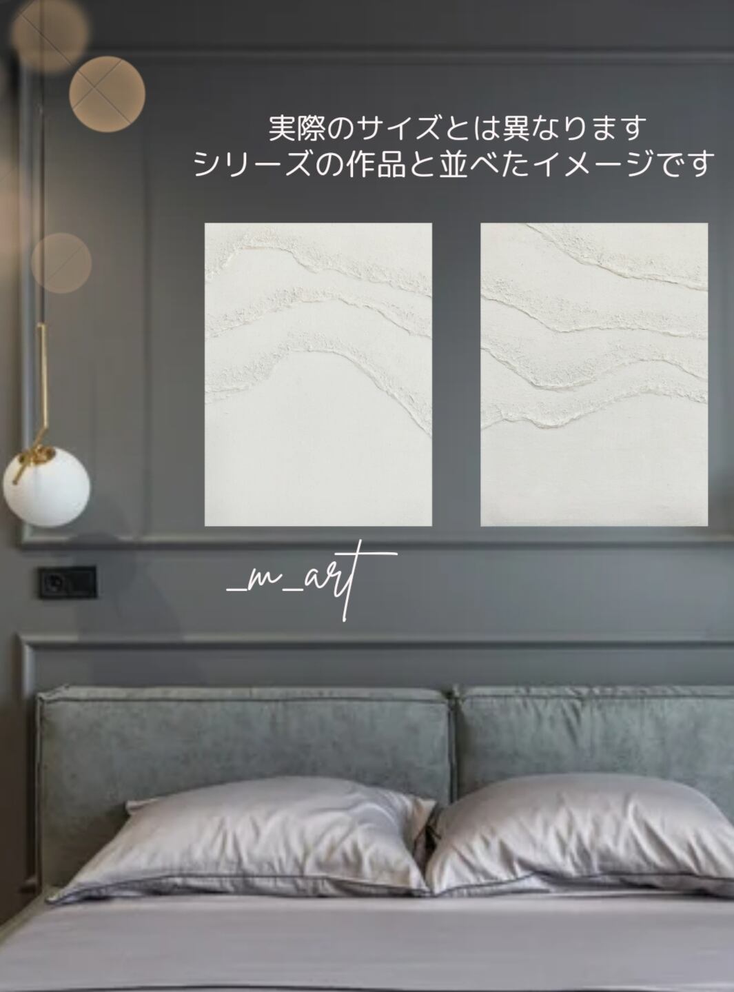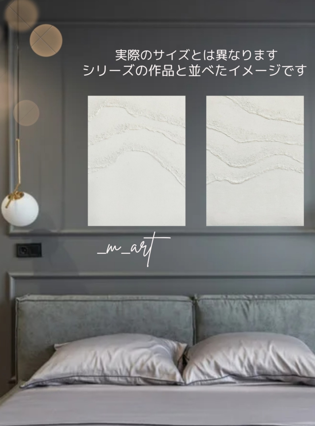 優しい波の音が聴こえてくるような、海の音、空気、匂い、景色を五感で全身で感じて浄化されるような作品を目指しました。どこまでも穏やかで静かな白い波の世界をお楽しみ下さい。