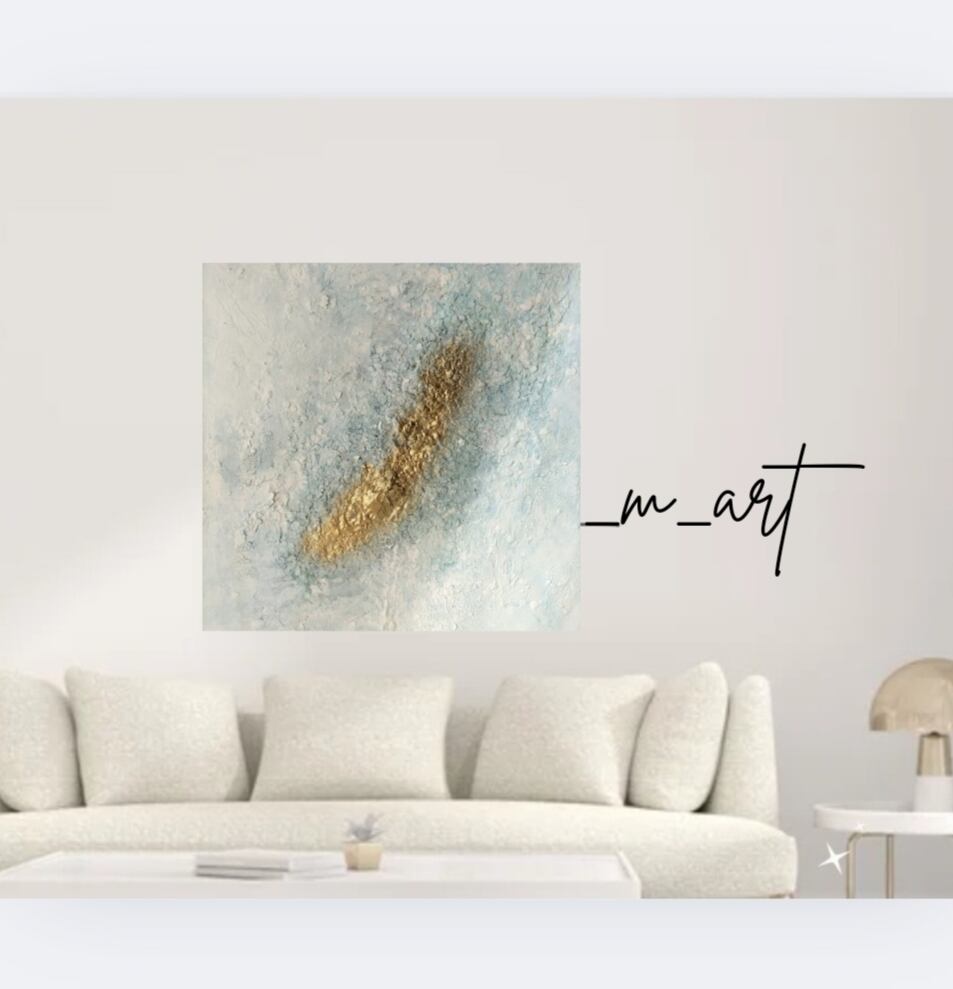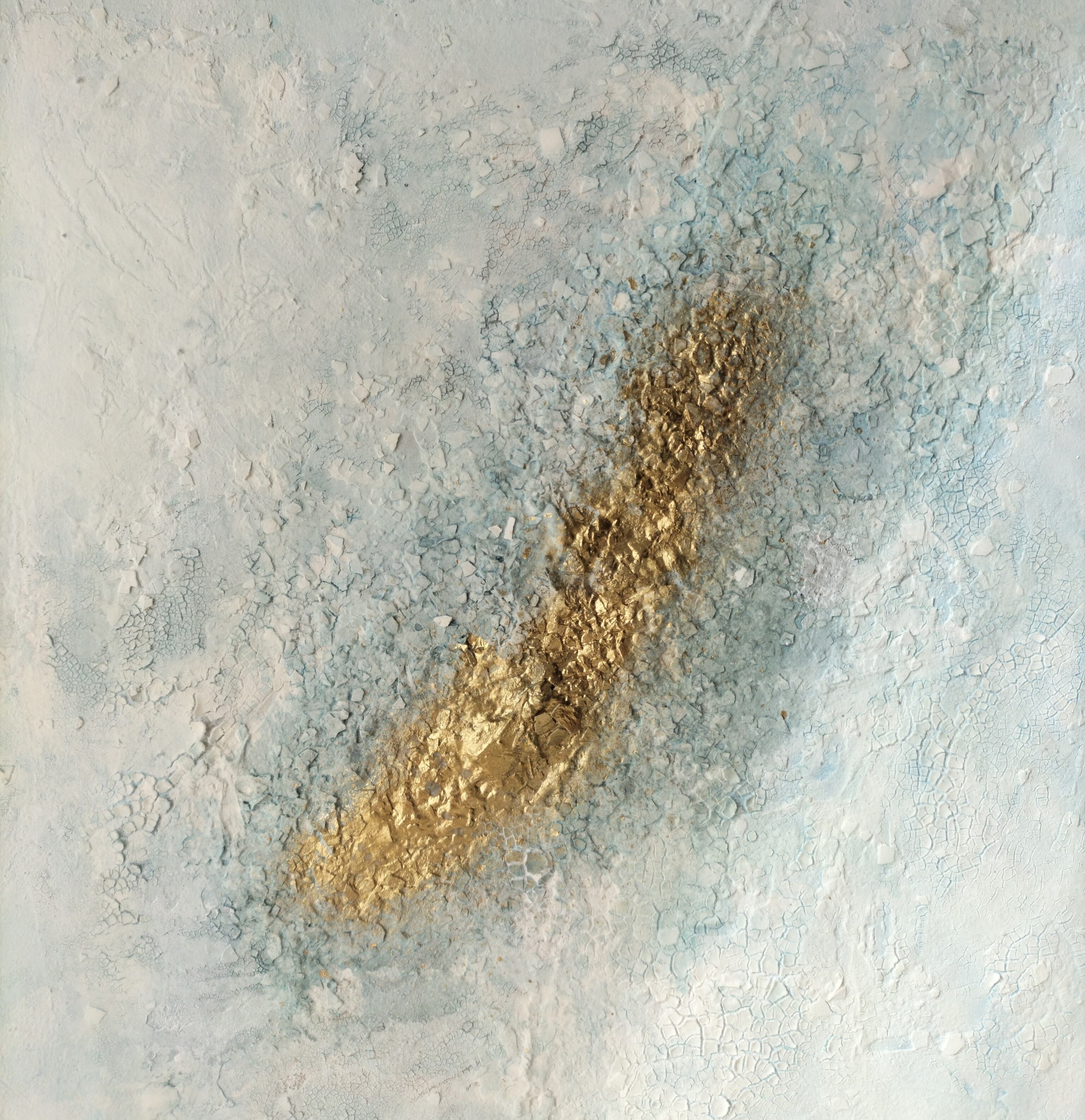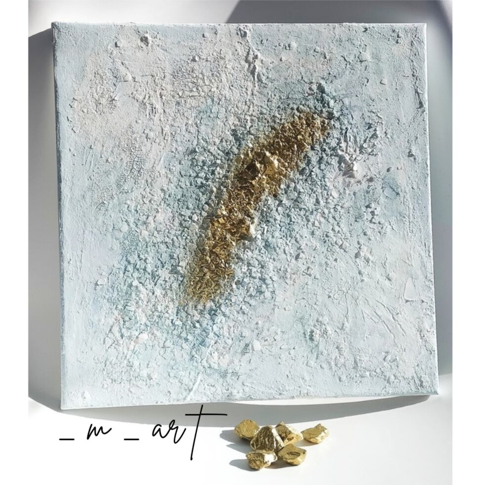 【Earth No.1】天然素材アート・テクスチャーアート・インテリアアート・抽象画・現代アート・爽やか・原画・一点物(水色/ゴールド)
