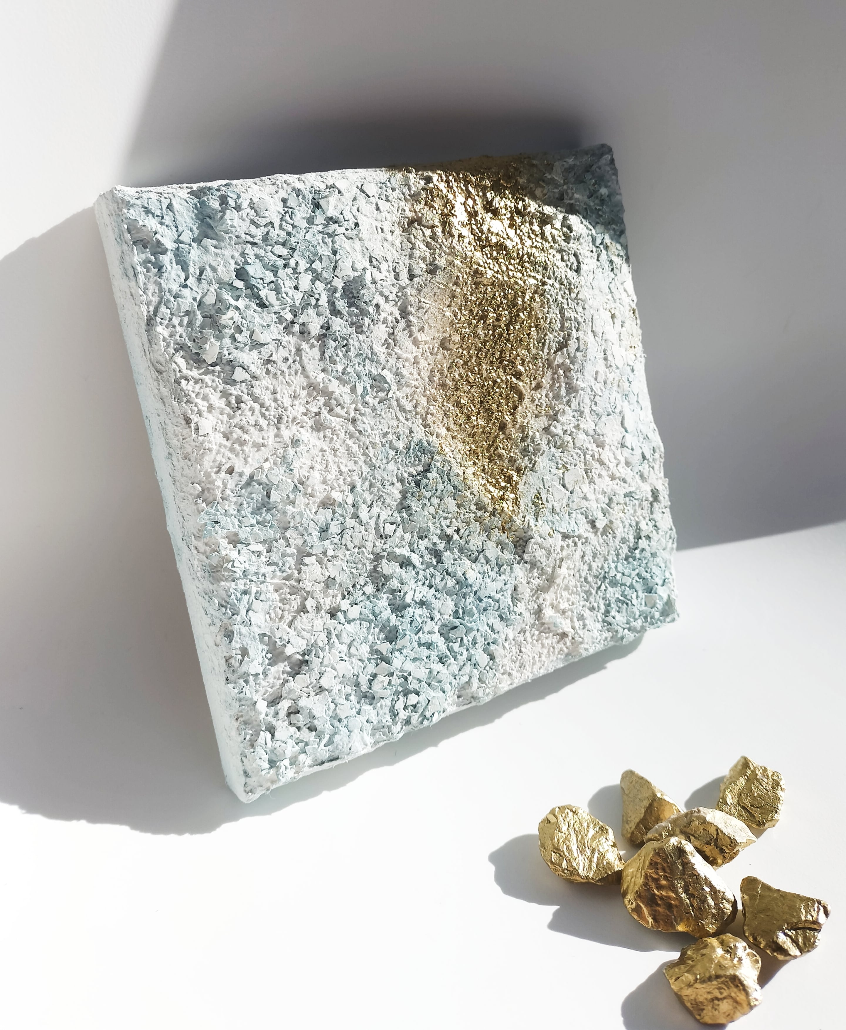 【Earth no.2 】テクスチャーアート・ミニマルアート・インテリアアート・ギフト・プレゼント・お祝い(ゴールド/水色)